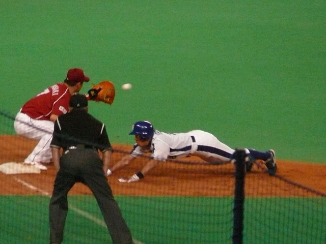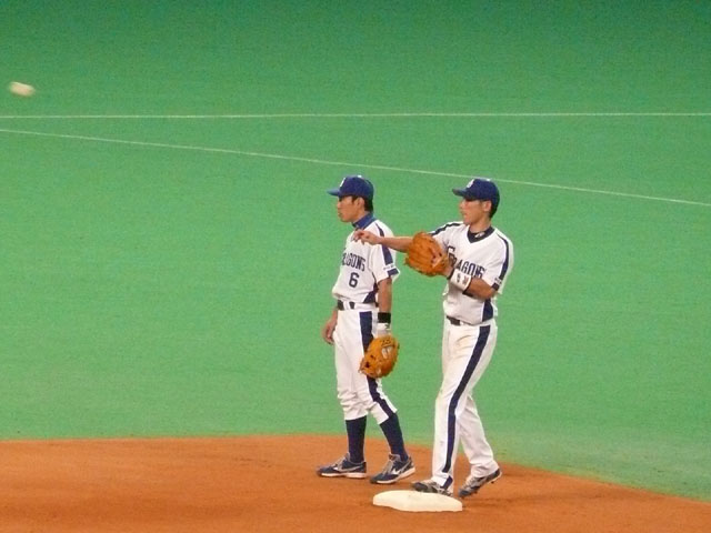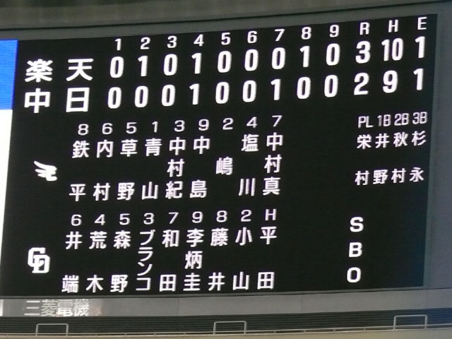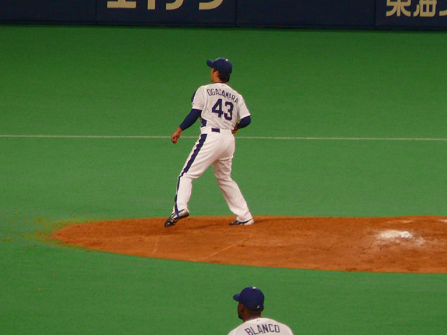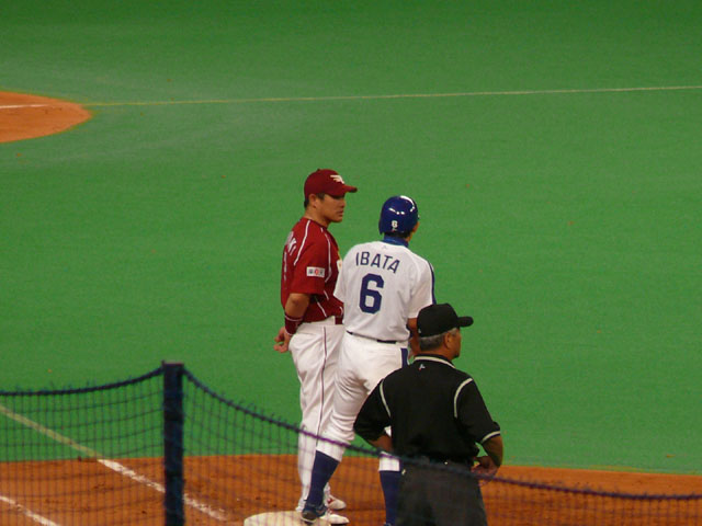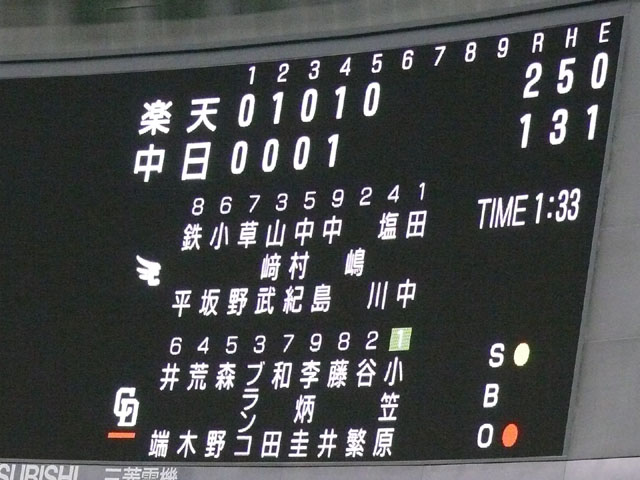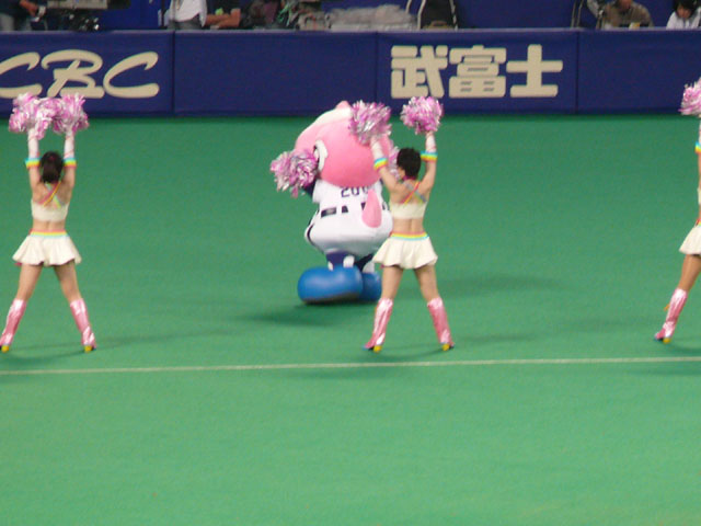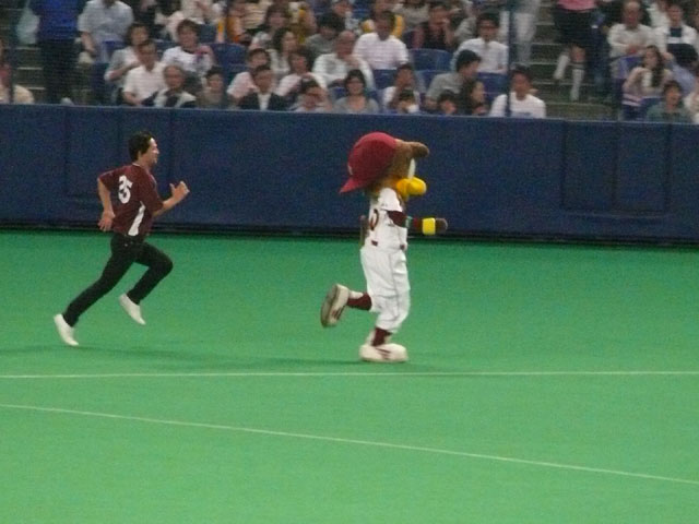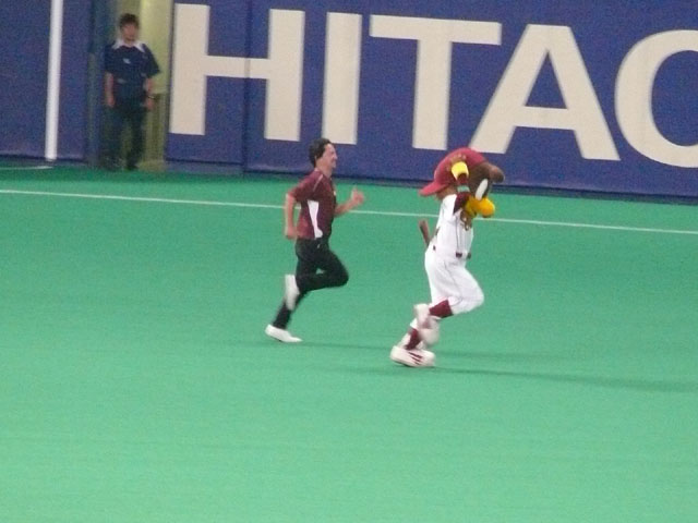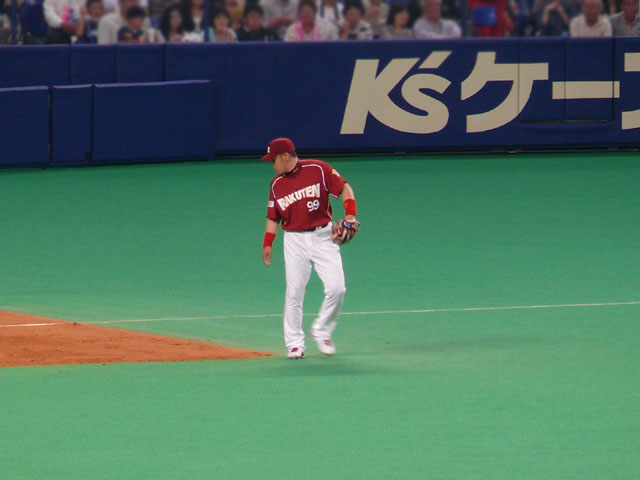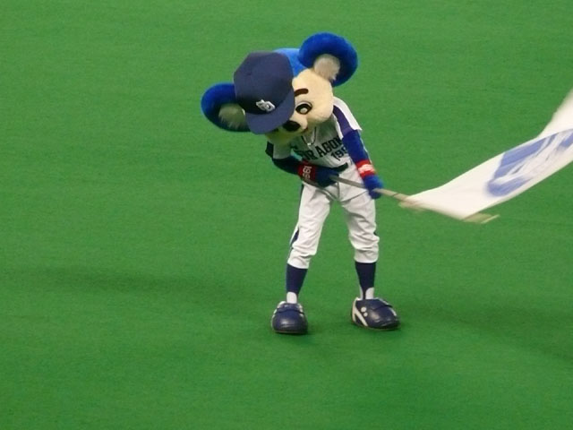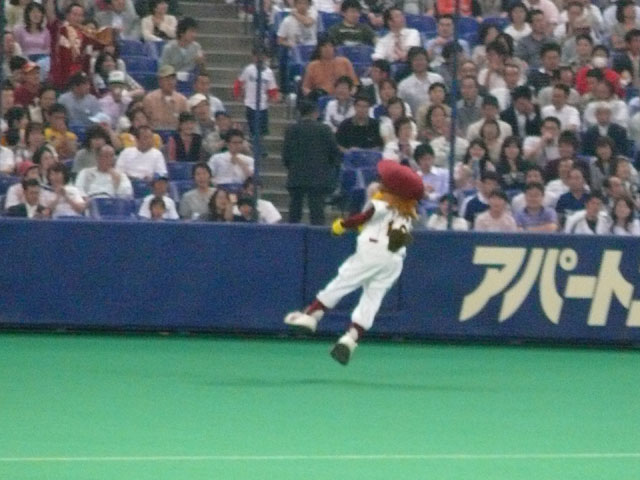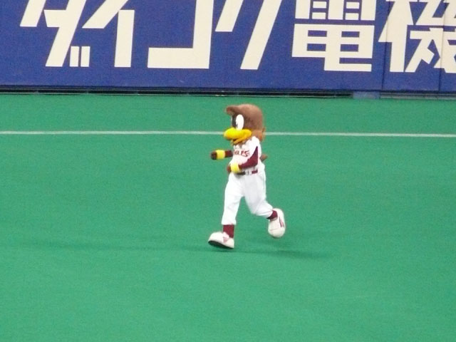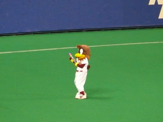 ま、どうしようもないので置いときます。 当の持ち主もあまり気にしてない。 バズーカのほうが大事です。 この日はマーくん・・・。マスコットじゃありません。 楽天の二枚看板のひとり。 ノリさん。 なつかしの山崎さんといばちん。 また帽子落ちますよ!? 今度は気をつけてました。 アライバ。 この日まで?無援護なガサーラ。 ピンボケですが、飛んでます。 ラッキー7ですよ。 旗振りドアラ。 旗振るときと踊るときはどうやって決めているの?ラッキー7ダンスタイムのときに踊っているのはわかるんだけど。 たまには旗を振ってみるのはいかがでしょうか? 牽制球アウトにはならないでください。 もりのんとノリさん。 なんで!?この距離で目がデカいことがわかるの!? 河原さんがんばって! 2点が限度だった・・・。 最後の癒しなんです。