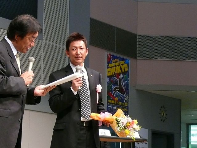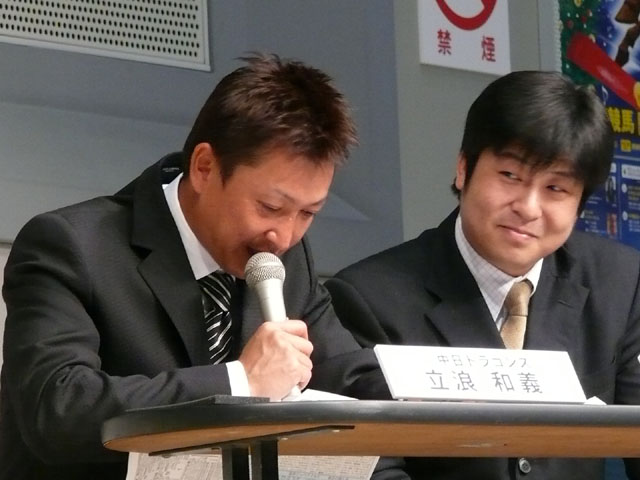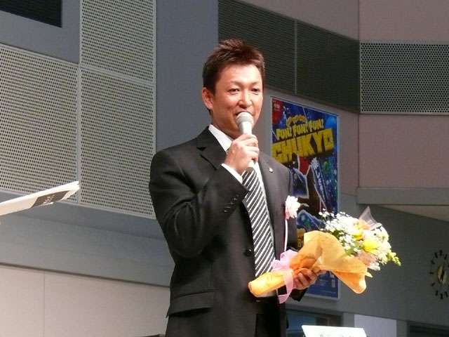 ドラ選手のオフシーズンイベント、ちょくちょく行ってますが立浪さんのイベントに行くのは初めて。 お客さんも凄いたくさんいました。警備員もかなりいました。さすが立浪さん。 久野アナ、日本シリーズの山井投手の続投の件を立浪さんに聞くのはどうなんよ?もういいよ・・・。 ドメさんはどうなる?を聞くのはともかく。 ドラ番記者の兼田さん、イラスト、似てるね・・・。 ドラ番記者ならではの話題・・立浪さんの、後輩に対しての接し方とかだっけ。 やっぱりかっこいい方ですね。上司にいたらいいね。 競馬予想。立浪さんは競馬はしないそうです。自分の背番号を選ぶのは嫌みたいですw 競馬予想始まったとたんお客さんも新聞見出しました。 「当たらなくても僕のせいにしないでくださいね」 そして立浪さんからサイン入りバットと手袋のプレゼント。 整理券とかあるわけではないのにどうやって選ぶのかなと思ったら、挙手だった。 お子様にはかないませんね。バットをプレゼントした小さな少年から花束プレゼント。 台湾に行ってるいばちんから電話があって、デットボールの影響はあるらしい。 立浪さんからのメッセージは「ふくらはぎだし、無理しないでほしいですね」とのこと。 あ、日本勝った。 お疲れさまでした。