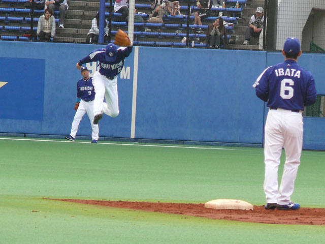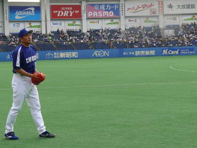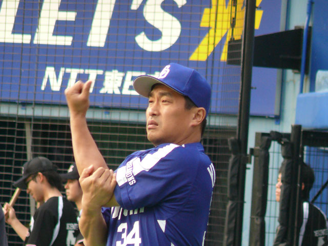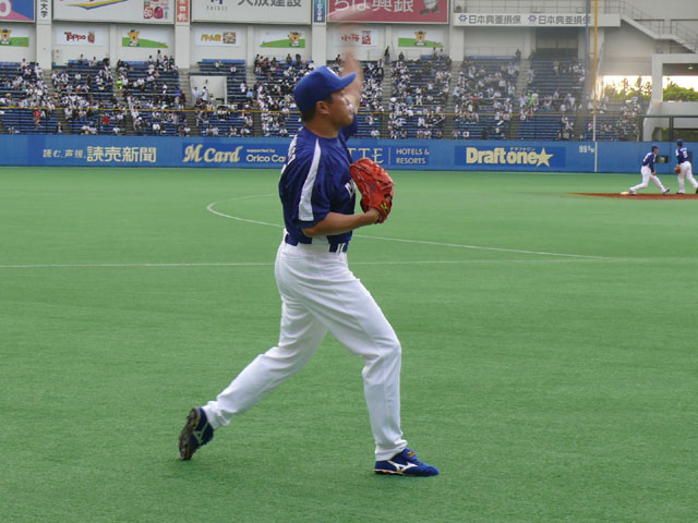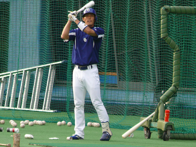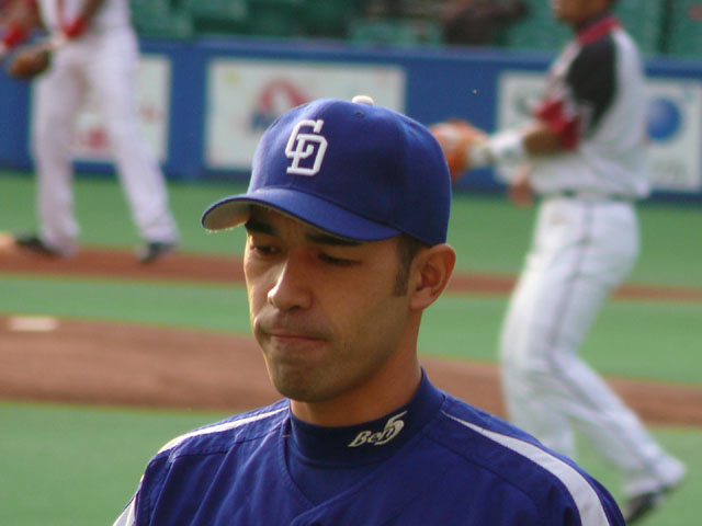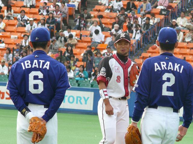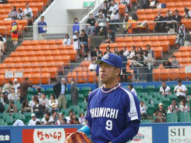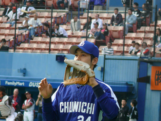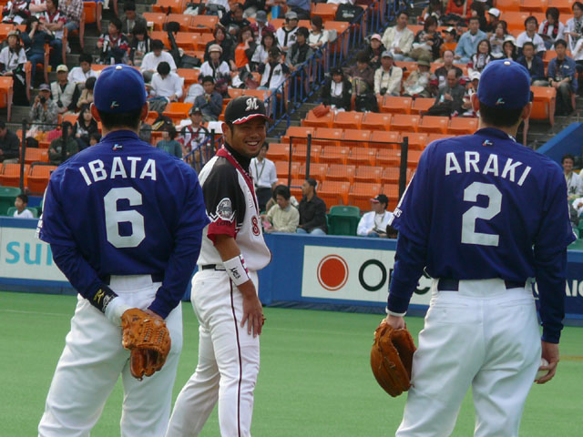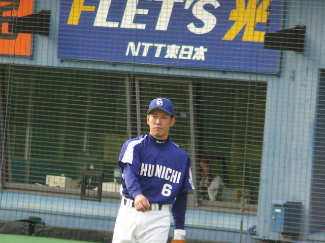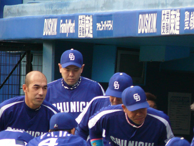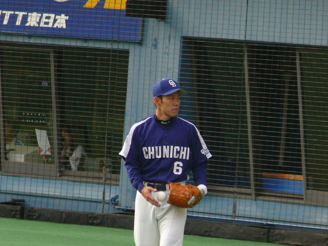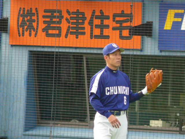 りあちゃんから「今日はドーム来ないの?」とメール来たり、昨日帰る前にりょくさんに「それじゃ明日」とか言われたり千葉で「今度の週末ナゴヤドーム行きますのでヨロシク」とか言われたりとかあったけど今日は行ってません。ちょっと忙しくてね・・・。<平日に遠征行く人のいう言葉かよ どんな形であっても勝ってくれればいい流れになるんだから。 HRで点を取る。打が線になれていないとしてもそれでも点が入るんだから。 祝、ノリさんHR350号。その本塁打の殆どはドラゴンズで打ったものじゃないかもしれないけれど、これからはがしがしとドラゴンズのユニでHR打っちゃってください。 千葉、試合前の選手をドバっと。 ナゴヤ球場並みに近くで選手が見れて興奮したのです。選手の写真を撮るにはとてもよいスタジアム。
