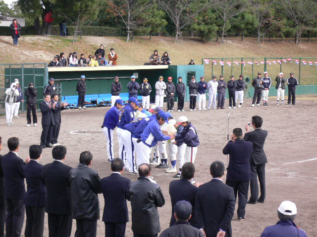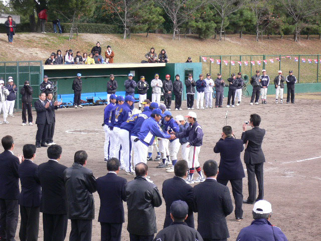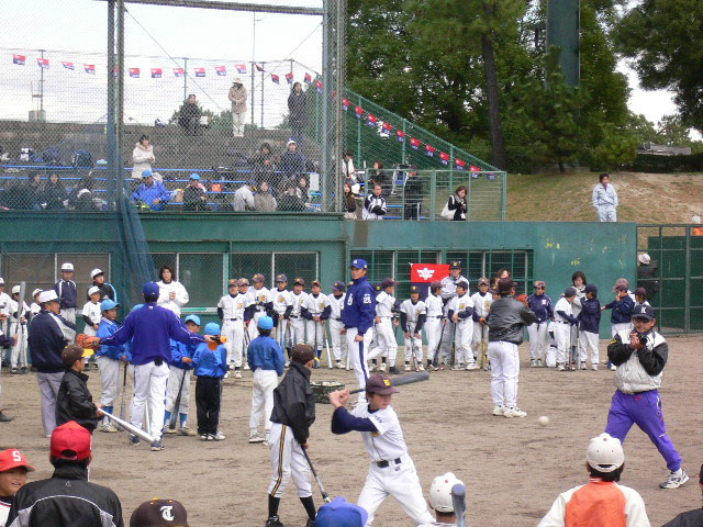 各少年野球チームが、記念撮影をすることに。そして少年野球チームの入れ替わりの隙に写真撮影成功w