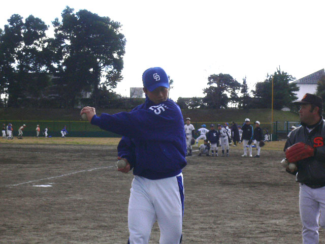 こっちは投球練習、高江洲くん。