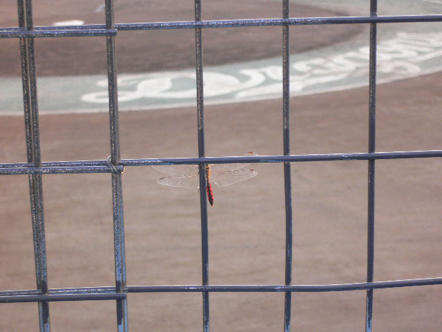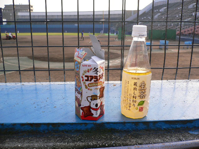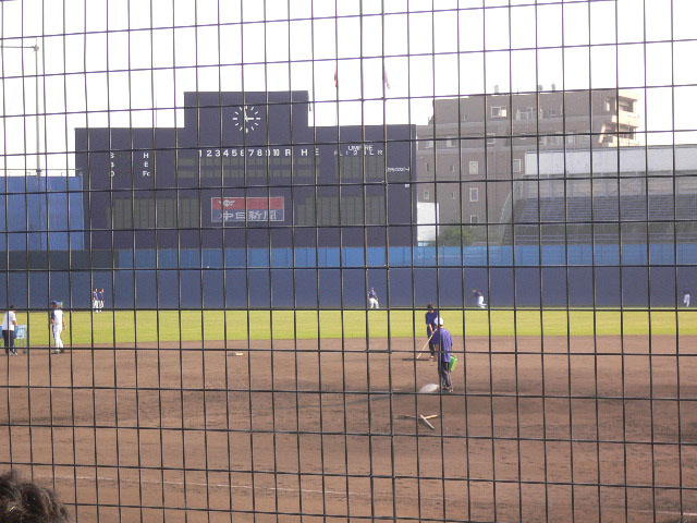 午後3時頃到着。昨日より混んでいたけれど、運良くバックネット裏にまた陣取れた。