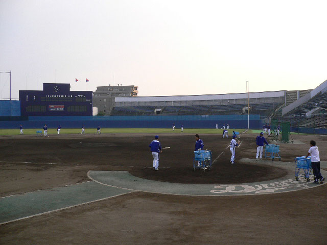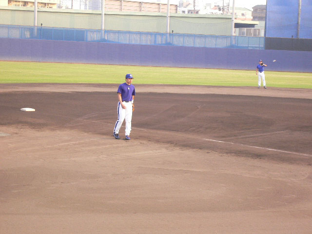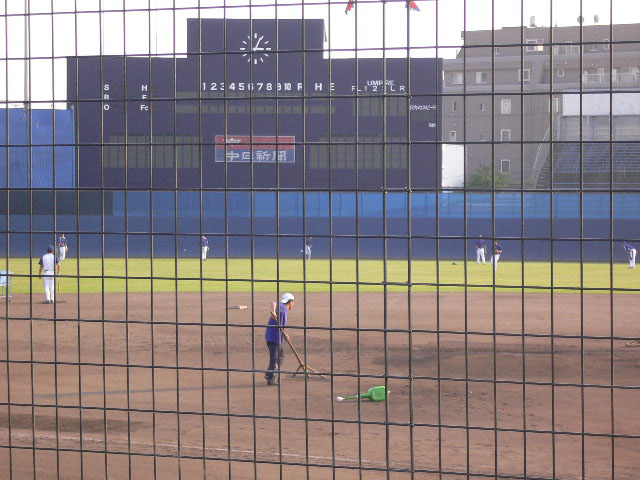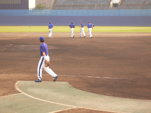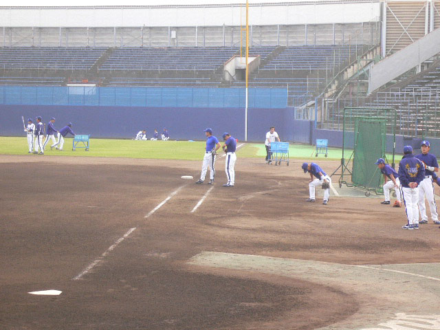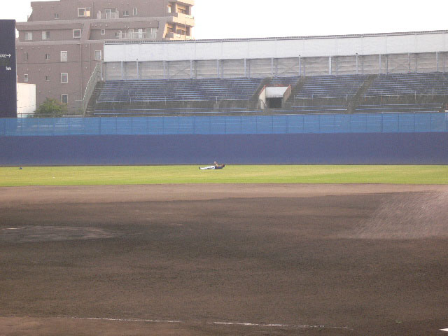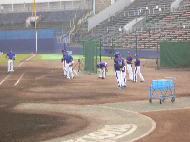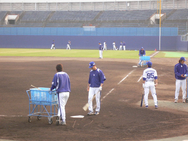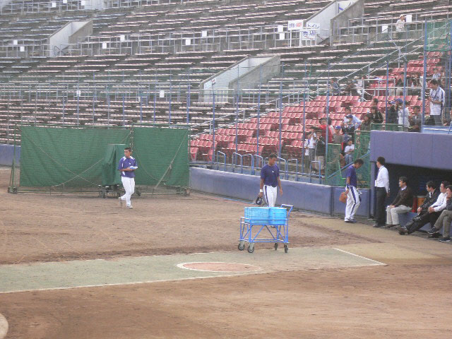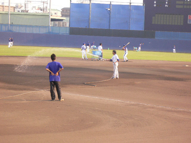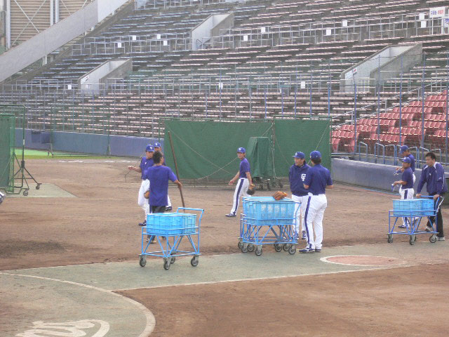 水まいていると、もう内野練習は終わりって言ってるみたいな気がした・・・。スケジュールにはちゃんと内野練習がまたあることが書いてあるのにね。