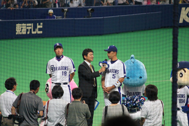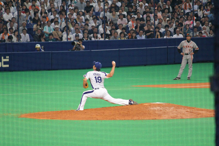 まだデジカメで浮かれてるんでデジカメ話させてください。 東京DでピントがB☆Bに合ってめちゃくちゃ感動したんですが、ナゴドではどうだろう。 たまたまこないだのG戦が16列目だったので(東京Dより遠いけど)ネットかぶってるポジションで確認。 よしみんにばっちり。 7/9 ナゴヤドーム
