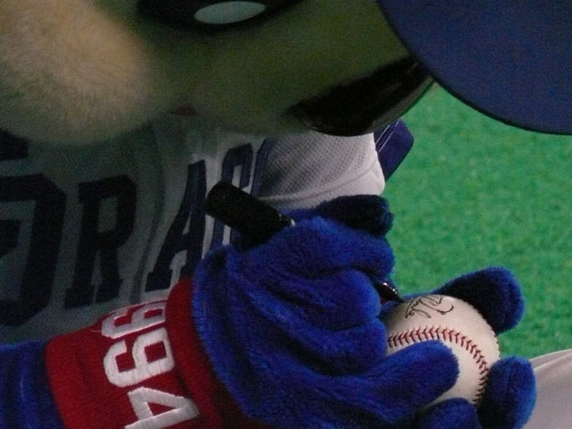 先日、とあるおねーさんたちに私の持っているカメラはどれくらいズームがきくのかという訪ねられたので、その場にいたドアラを勝手に実験台として、デジカメの液晶画面からみてもらいました。