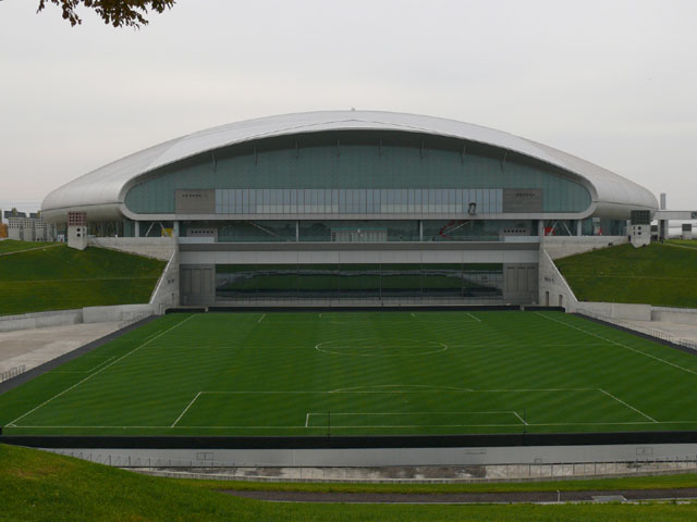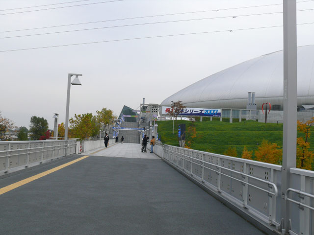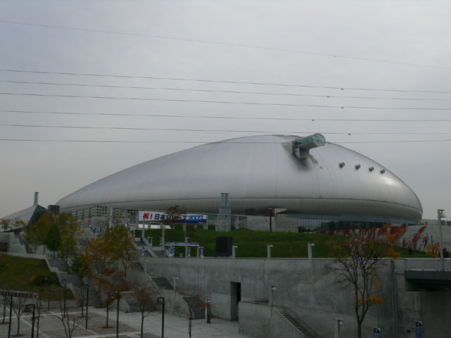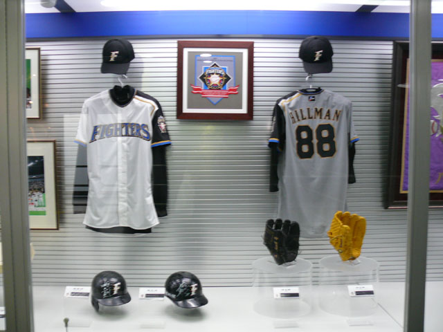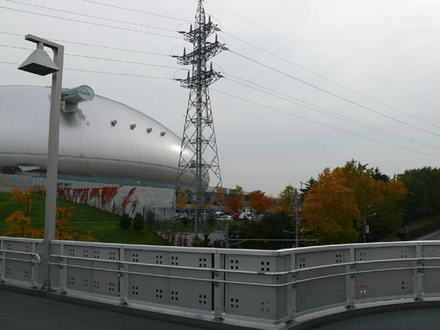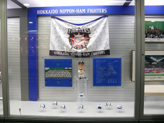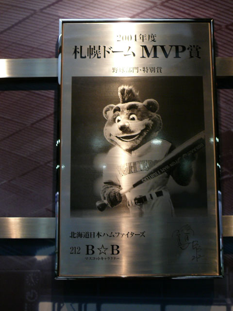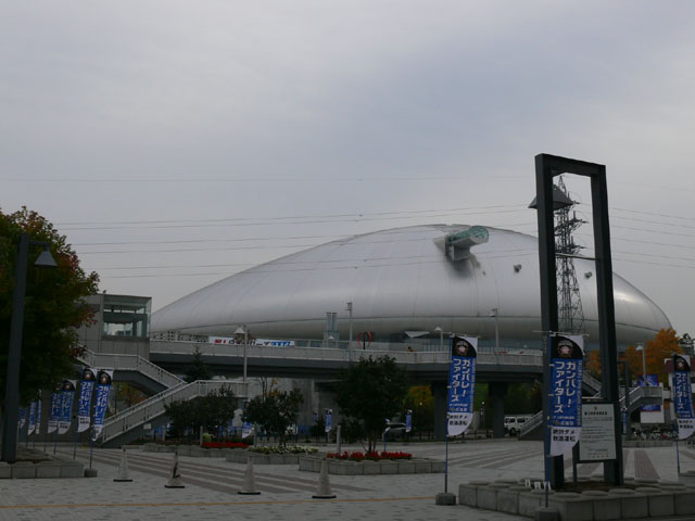 きっと外にB☆Bとドアラが出てきてくれるに違いない!と思ったんですが。<結論からいうと出てこなかった・・ハズ。 地下鉄降りて、ファイターズグッズ売り出す準備しているイトー○ーカドー通り越して歩いているとドームの端っこがみえてくる。 更に歩くと全貌見えたり。 歩道橋の上より撮影。 飛行機の上から見ても驚いたんですが、紅葉が凄い綺麗。 帰り道はこの歩道橋に規制が入り、なかなか進めませんでした。 階段登ったところで北口はまっすぐ、西口とビジターの入り口もある南口は右と指示があります。 とりあえず北口に行ってみる。案の定グッズショップがある。 当然空いているので入ってみる。 日本シリーズ記念グッズというものが売っている。まぁ多分ナゴドでも売り出されるでしょう。 B☆Bグッズがいっぱいある。ファイターズのマスコットはB☆Bしかいないからその分いろんなものが作れるのかなぁ。 外歩いて寒かったのでついB☆B耳あてを発見して、ついほしくなった・・・。 買ったところでどこでつける気ですかアンタ。 と気がつくことができたので買いませんでした。ふぅ、あぶねー。 B☆Bは好きなんですが、これつけて栄を歩けといわれてもさすがに無理です。 ところでドアラ耳耳あてがあったら・・・。 ドアラ耳あてじゃなくて、ドアラ耳耳あて・・・。 シャオロン耳あてやパオロン耳あてがあってもかわいいと思うんだけど。 ドアラ耳耳あて、どうですやろ・・・。 と、そんなことはまぁいいとして。 グッズショップ。 パオロンが自費で購入したというテンガロンハットも売ってました。 あとB☆Bダッコちゃんとか。 どこの球場も最早定番のB☆Bパペットもありました。2000円と割高な気がしますがこれだけ購入。 ドラグッズは、少ないですな。更にドアラグッズは少なかった。 巨人グッズが1つの棚、中日・阪神が半分ずつ、広島・ヤクルト・横浜が1/3ずつという割り当て。うーん北海道はやっぱり巨人人気なのか。 ただ、去年の限定のゴールデンドアラ耳がここでは普通に販売されていてちょっとびっくりした・・・まだあるのか・・・。 グッズショップを出て、ドームの外を歩いてみる。 東口には立見席の人が場所取りしていた。 東口からサッカーのスタジアムが見えました。そして紅葉が綺麗。 反対側からドーム撮影。 マスコミらしき人が東口に並んでいる人にインタビューをしていて、ついでに「中日ファンっている?」とか聞いていて、「まだ見てないー」とか言っているのが聞こえてきましたがここにいるよ・・・名乗りはしませんでしたが。 更に歩いてビジター入り口がある南口へ。さすがにまだ誰もいなかった・・・。 で、南口は屋根があるのですが、それがなんか暗い感じをかもしだしていた。うーん・・・。 北口はガラス張りで開放感があるんだけどな。 そして歩き、今度は西口へ。 何故か西口だけ建物の中。 ちょっとしたミュージアムでした。田中幸雄選手の2000本安打時の1塁ベースなども飾られていました。 ドリカムの美和ちゃんたちの手形もあったり。 顔違いますぜ!! あとは北口にあるカフェに入って時間つぶしてたりしてました。 徐々に人が増えてきた。 あとドラ営業の水野さん見かけました。水野さんが私をわかるわけないのだけれど、なんか(私が勝手に)知った顔見れたのでちょっとホッとしたw