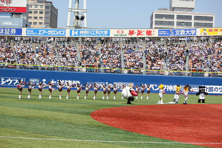 てかもう交流戦。スタートが遅れてるんで、もう?って気がする。 ラインダンス、エキベーさんも参加だぜ。 4/12 ハマスタ ほぼマスコット。