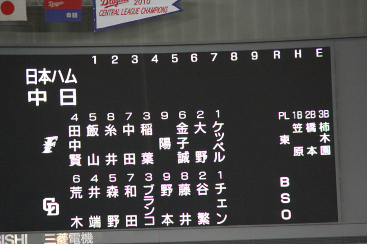 交流戦、貯金は作れてるけどハムには負け越してしまった。残念だ。 2回もダルビッシュにあたんなくてもいいじゃんかよー。 ダルビッシュを名古屋で見ることができた。しかもよー打つ。でかい人たちばかり。 5/25 ナゴヤドーム