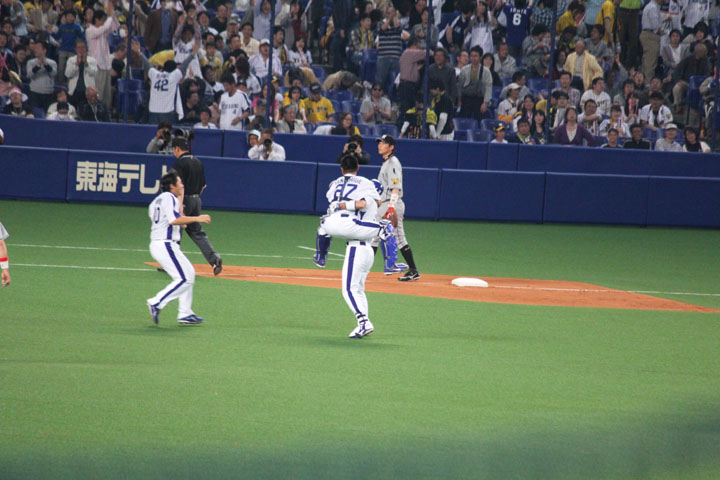 サヨナラのチャンスに凡退・・というのは去年一昨年と結構よく見てます。 でもピッチャーゴロ送球エラーはさすがに見ない・・・。あれはありえん。 私はピッチングフォームに関しては浅尾よりあっきーのほうが好きなんですが、でも浅尾のフィールディングは今まで見てきた中で本当に惹かれる。 もりのん1000本安打おめでとうー!!本当にいい打者に育ったよね。 ブラゼルさんが記念球を持ってきて、その後拍手してくれてちょっと嬉しかった。 そういやドラさん今期1勝しかしてませんが、その1勝を現地で見れているのでまだ私はいいほうなのか。
