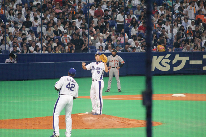 14日はにーさま(←夫)のお父さんと一緒に外野応援、15日はこれまたにーさまのお父さんとファンクラブチケでパノA観戦ということで、デジカメいろんな場所から試してきました。たまには嫁らしいことを。一緒に野球を見に来ることが一般の嫁のすることかどうかはわかりません。試合?知らん。