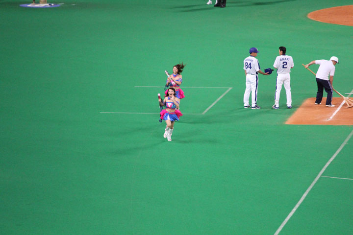 バズーカ、1塁側のチア、まみちゃんとりさちゃん。