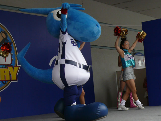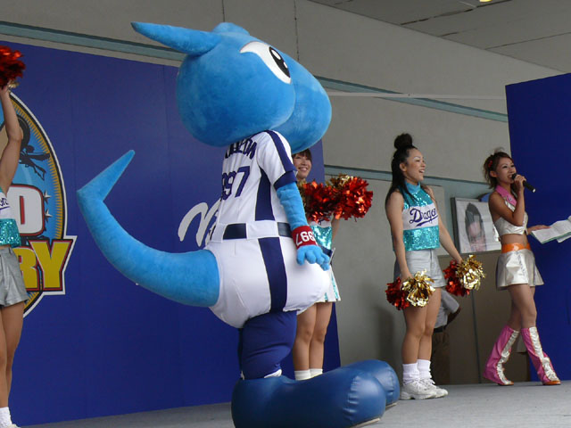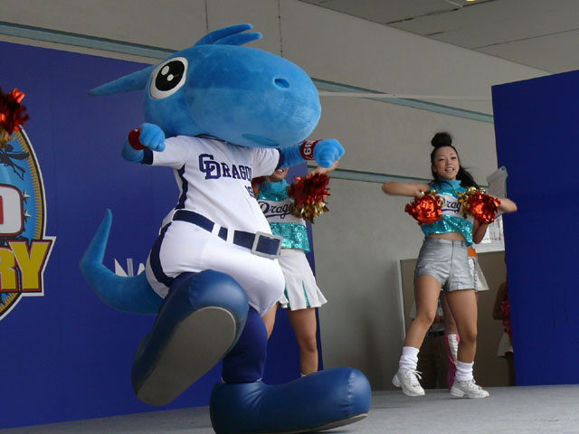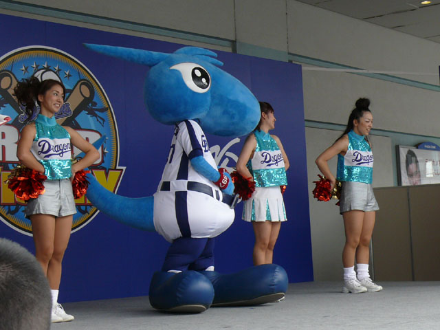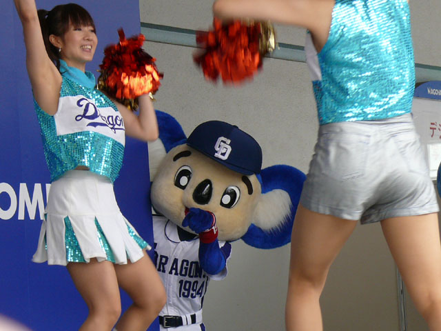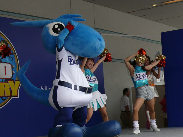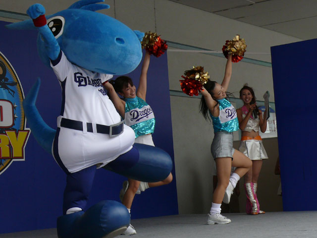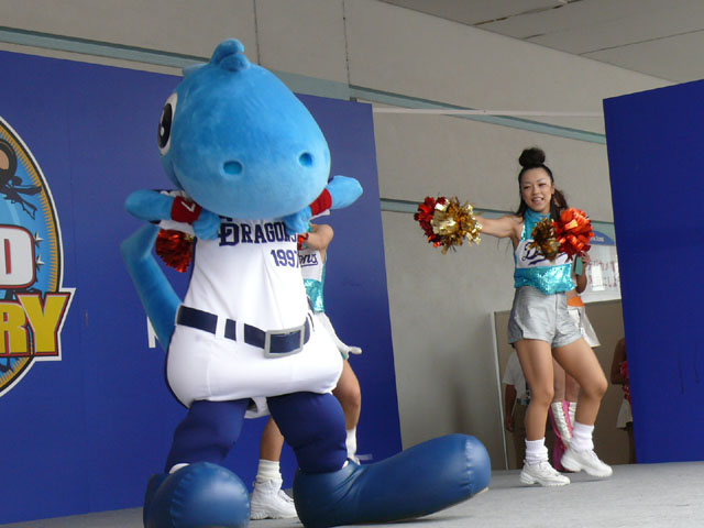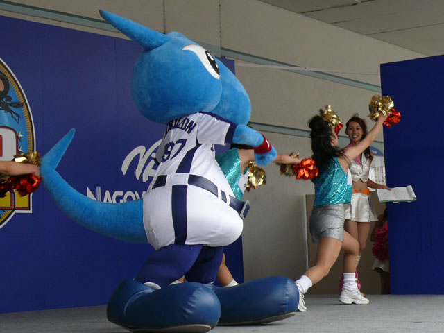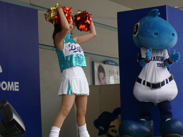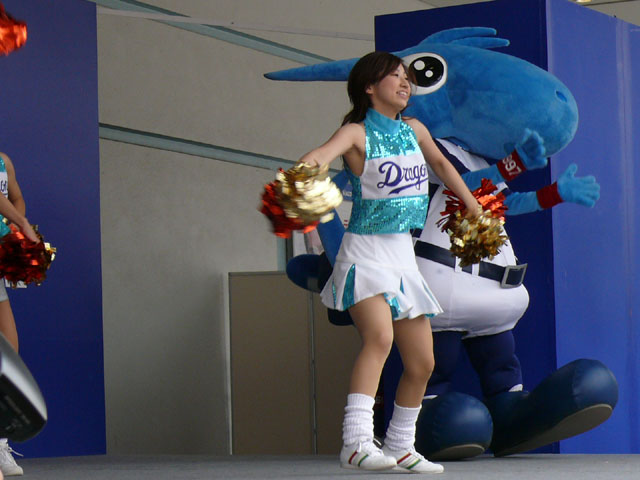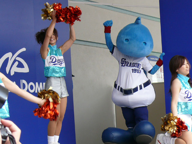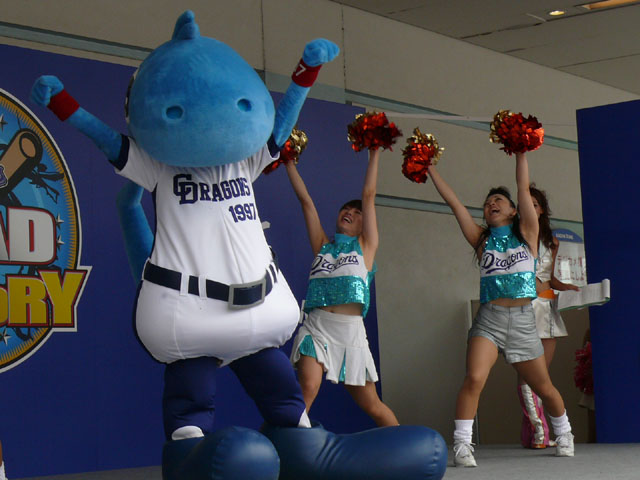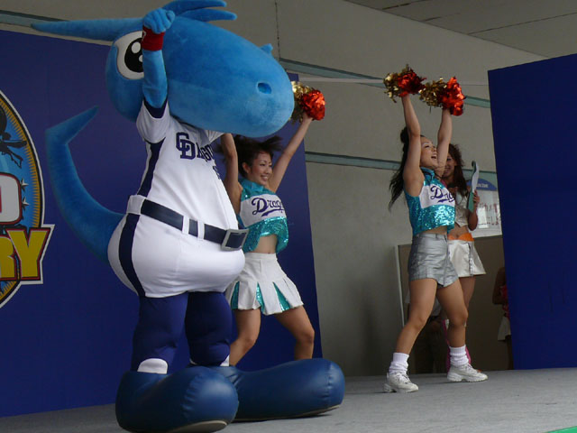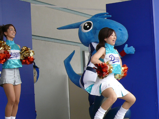 2000年のチアドラさんたちです。 「この頃覚えてる?」チアドラは覚えてません・・がナゴドにはきてたよ。もちろん今ほどじゃないけど。 途中からシャオロンが飛び入り?参加。 「勝った!勝った!WIN、WIN、WIN!」はインパクトありすぎ。当時覚えていないのかが不思議だ。ダンスをマトモに見てなかったんだろうな、もったいないことしてたな7年前の私・・・。 そして三三名古屋拍子。 ついシャオロンメインで撮影しちゃうね。 コミカルなダンスが凄いインパクトな2000年チアドラさんたちでした。 三三名古屋拍子は来年あたり復活とかしてもおもしろいんじゃないかな? チアドラデーもまだまだ続きます。