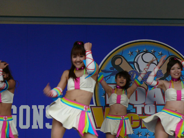 このときは事情も知らず、新曲をやるもんだとばかり思ったのでちょっとがっかりしましたが、ブルーマックスではなくチアドラが踊るのはそれはそれでまた良し。 シャオロンもダンスアレンジしてみる? 「いつもハラペコ」は永遠なり。 人気、衰えねー。 ・・・・・・チアドラのエントリだった。つい。 ドアラと初対戦のあっきぃ。 なつのオンラインクラブの千葉遠征記読みましたよ。 かっこいいくれはちゃんと、キモいの。 リーダーです! やっとでてきましたみなみちゃん。 何スかアナタは。 かなちゃんはもう安定感抜群です。 まみちゃん。一生懸命な感じです。 バッチリ目線ありがとうみなみちゃん。 くれはちゃんとなつ。 もういっちょ、なつ。 かっこいいのでさらになつ。 動きがシャープになった気がしますいまきちゃん。 あいかちゃんがジルバのお相手してくれてます。 即いなくなりましたw かなちゃんとくれはちゃんのコンビ。 ちょっとめずらしいあやなちゃんとあっきぃのコンビ。 センターは常に奪う青いコアラさん。 開幕のときのD-STAGEは何気にあっきぃが目だってますね。これからのDステでももっと活躍してほしいです。 この日のステージを見たときに新しい子のなかでインパクトあったのはなつでした。データを見直してみてもなつがいっぱい写ってます。 それにしても、あやなちゃんのいい表情で写ってるのが全然なかった・・・。