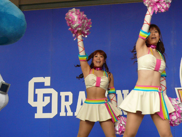 清水愛加さん。 渡辺紘子さん。 伊藤真実さん。 伊巻沙由梨さん。 田中亜貴誉さん。 中野友理さん。 塩見佳奈さん。 太田みなみさん。 可児千裕さん。 鈴木なつ美さん。 高木愛加さん。 平田菜津実さん。 倉田絢那さん。 西尾由美恵さん。 野田紅葉さん。 伊藤優さん。 佐藤綾乃さん。 携帯のドラゴンズ情報のチアドラメンバー紹介の順なんですが、背の順なんでしょうね。 私はステージは基本動画撮影しないんで写真ばっかりです。 写真は17・18日両日から探し出したものなので、特にこの二日間は一人一人を撮影より全体を写しているから(しかも17日雨で写真いいの全然ない・・・)なかなかあまりいい感じで写っていない子もいるけれどゴメンナサイ。 今年、ステージは去年、一昨年より数少なかったけれど、本当に楽しかったです。