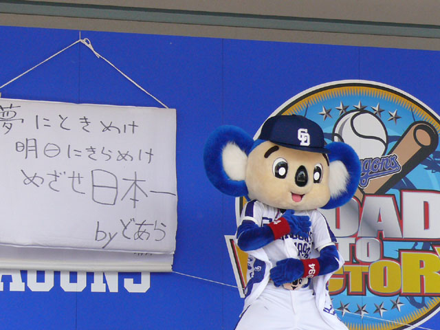 プロ野球好きです。中日ドラゴンズ馬鹿です。ドアラ・シャオロン・パオロンが凄く大好きです。 毎日更新は多分無理だけどドラゴンズのヨタ話、というよりほとんどドアラ・シャオロン・パオロンのことを綴っていこうかと。 合言葉は「ドアラブ」。
