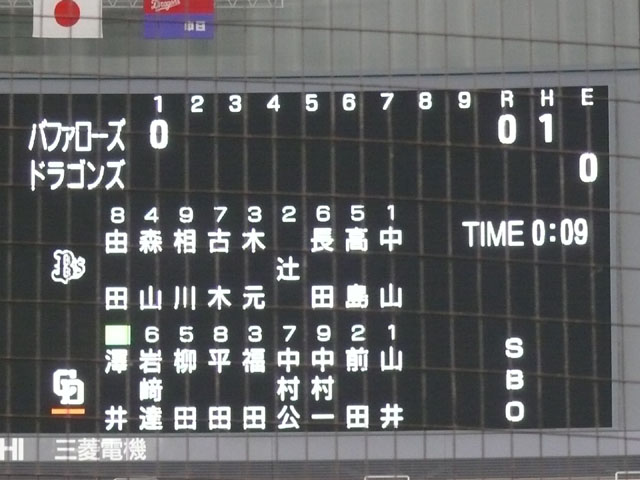 ナゴヤ球場に行くのは6月までが限度という軟弱者。 昨日の話ですがナゴドの2軍戦見にいかない?と誘われたので行ってみました。 最終スコアを撮りわすれてしまった。 ナゴドでの2軍戦チケットは¥1,500-ということを忘れてました。¥1,000-だと思い込んでいたよ。