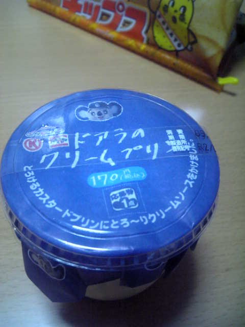コンビニで買うものといったらポテトチップス・・・。サークルKサンクスで売ってる多分限定の手羽先唐揚げ味と沖縄スパイス味にめちゃハマる。 ドアラ祭りに便乗、一応しっぽ。とかも購入。明日の朝ごはん。ケーキだけ売り切れとった。 で、今このプリン食したんだけど結構おいしい。個人的にはまんまるプリンより・・・ そして先程帰宅したにーさまに蓋だけ見せたら「アンタ本当ドアラ好きねぇ」と言われた。 そーだね。